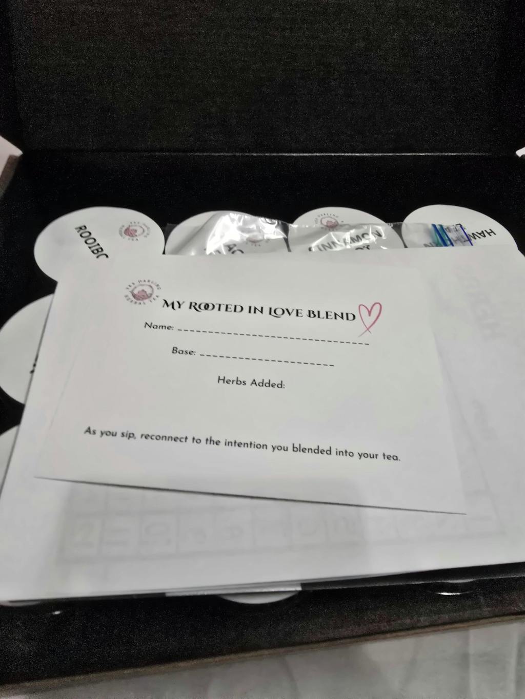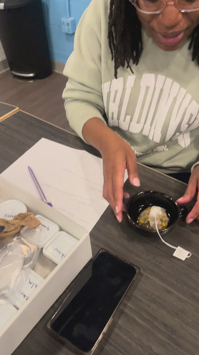 Craft a custom tea blend to take home, allowing you to continue your self-care journey with a blend rooted in intention and care.